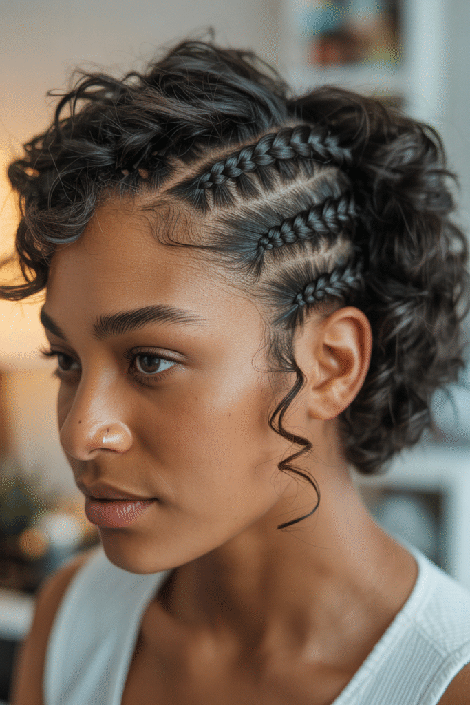 Layered short hair: Mini French braids and textured styles work best. The layers add natural movement.