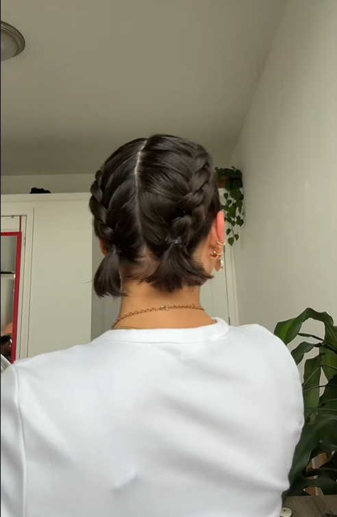 Not technically a braid, but it gives the same vibe. Twist sections from each temple, pull them back, and secure with bobby pins. This works on literally any short hair length and takes about 30 seconds.