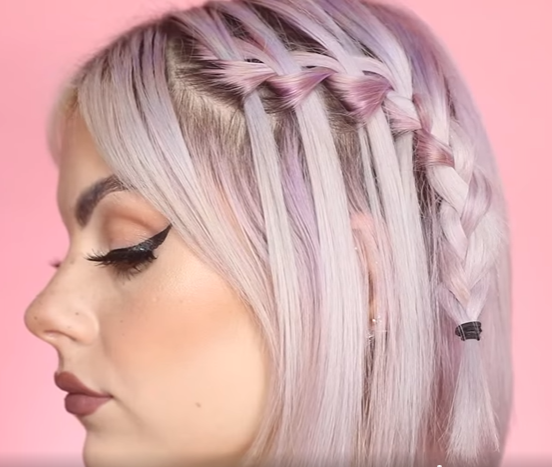 Take the top section of your hair, create a loose braid, and pin it back. This is perfect for when you want braids but also want your hair down. Plus, it works on practically any short haircut.