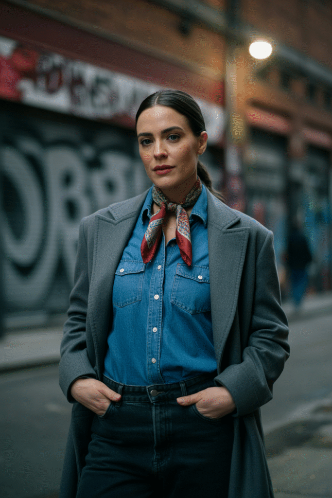 Yes, the “Canadian tuxedo” works in winter. Layer denim shirt + jeans under a wool coat. Add a colorful scarf to break it up.