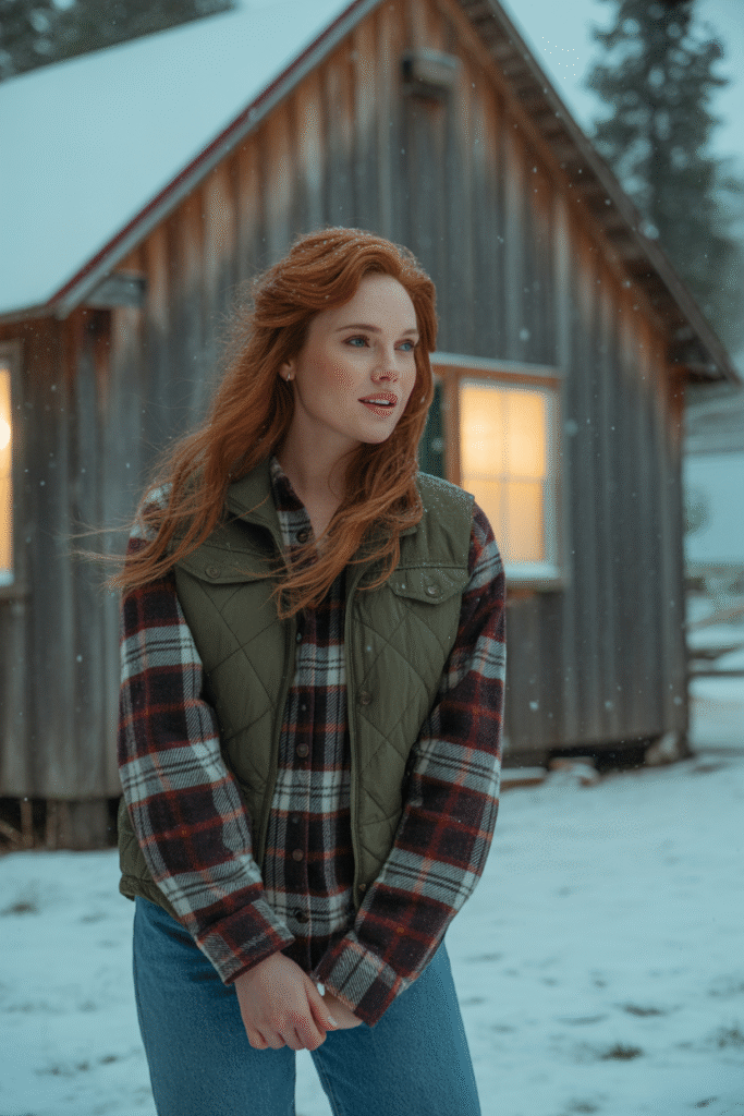 Pop a plaid flannel under a quilted vest and wear with skinny jeans. It’s a simple layering trick that always looks intentional.