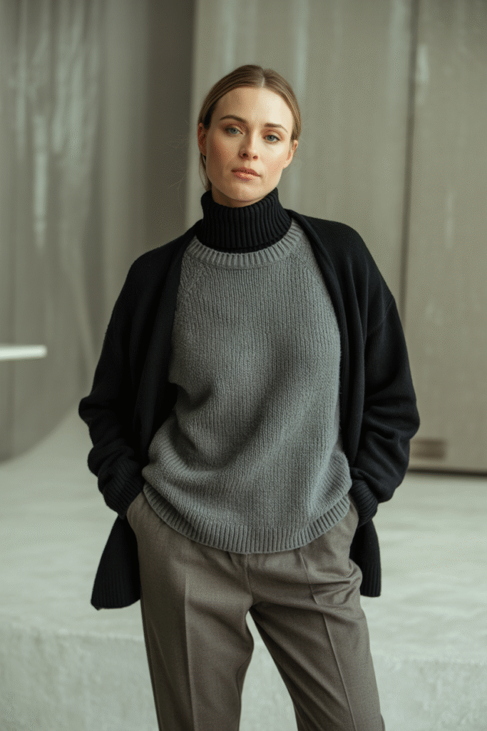 Pick one color family (like shades of beige, gray, or even forest green) and layer it from head to toe. It’s amazing how pulled-together it looks.
