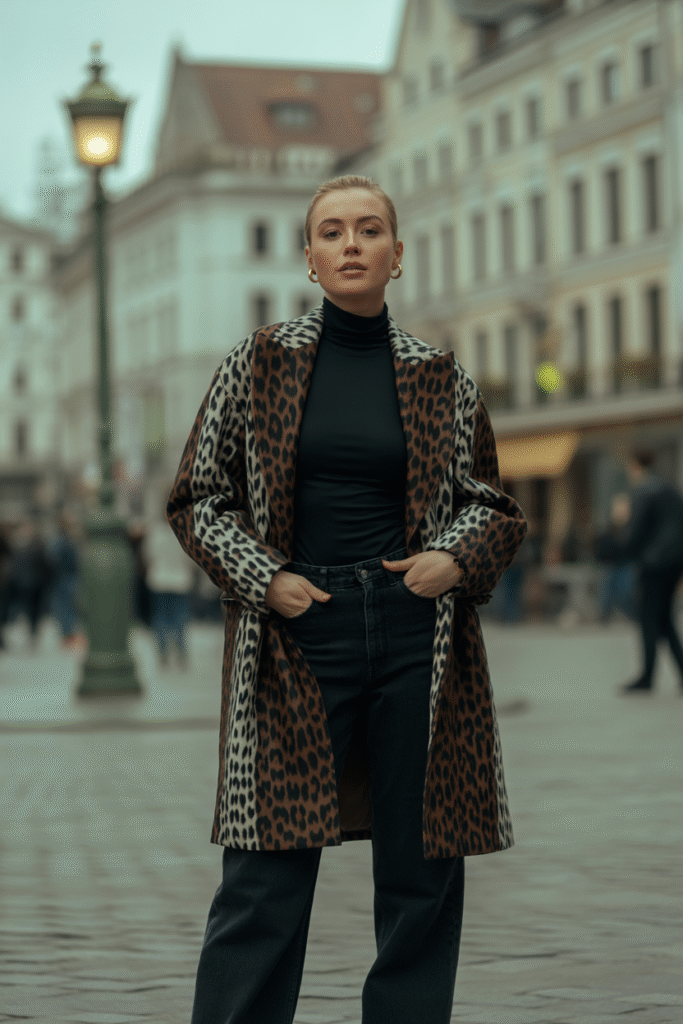 A wrap coat tied at the waist looks elegant instantly. Pair with slim jeans or trousers underneath.