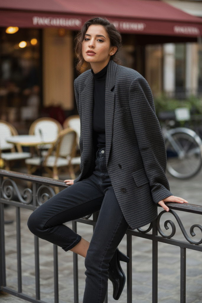 Blazers aren’t just for the office. An oversized one over a fitted sweater and jeans is stylish and warm.