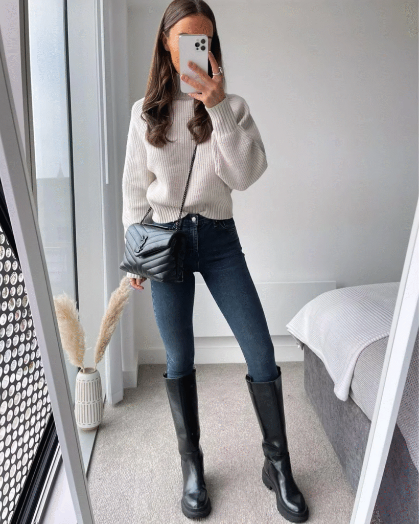 I love this combo because it feels put-together with almost no effort. A soft sweater dress with knee-high boots looks polished but cozy. Bonus if you add tights for extra warmth.