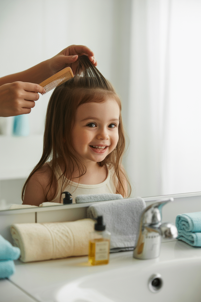 - Parting tip: Use the tip of a comb or your finger to make a clean part. Kids love “lightning bolt” or “heart” parts—keep it simple on school days.