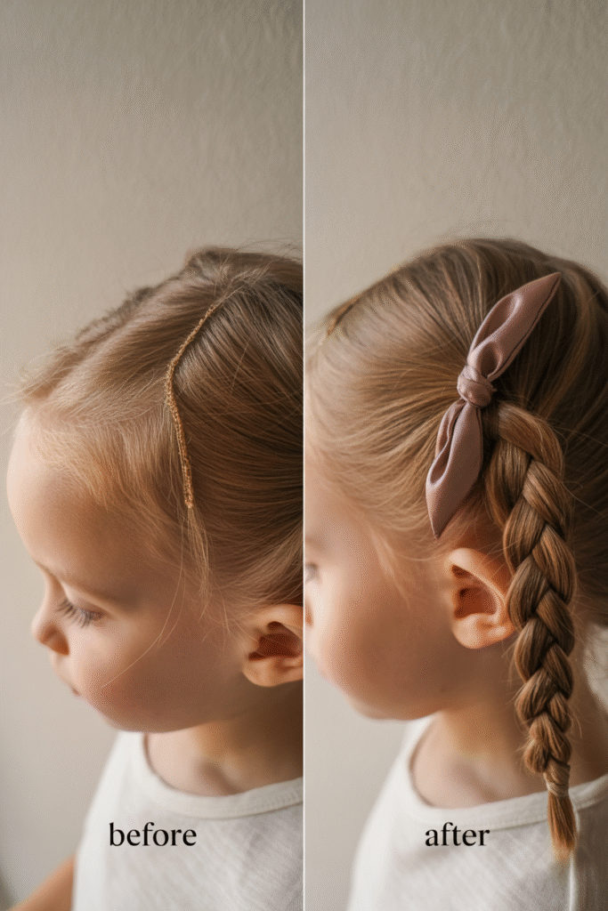 Key takeaway: Add one small accent (ribbon, bow, or clip) and keep the rest simple. Kids move a lot; simplicity survives the day.