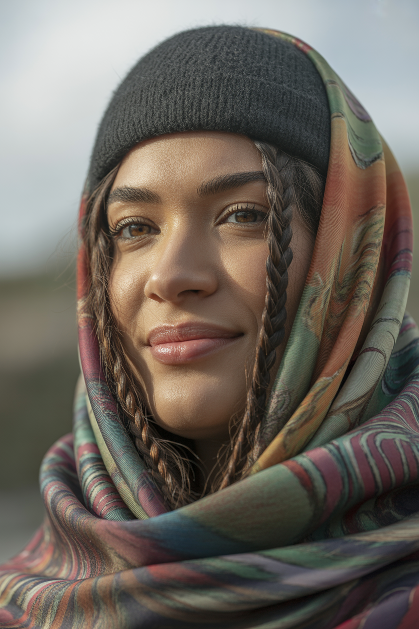 - Color tip: Cream, taupe, or heather gray beanies soften bolder braid colors and look great in winter light.