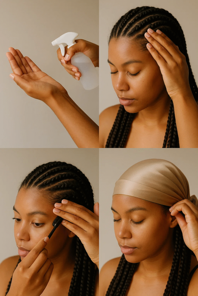 - Step 1 (1 minute): Lightly mist braids with water or aloe-based spray.