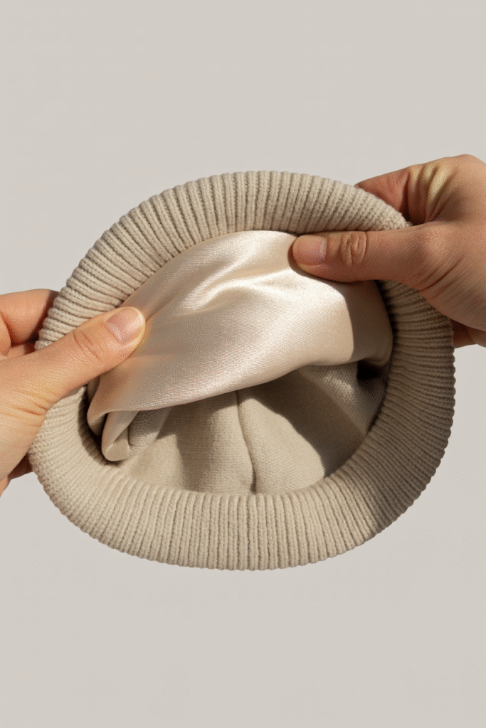 - Step 6 (1 minute): Satin barrier: line your hat or tie a thin satin scarf—especially if the hat is wool or you’ll wear it for hours.