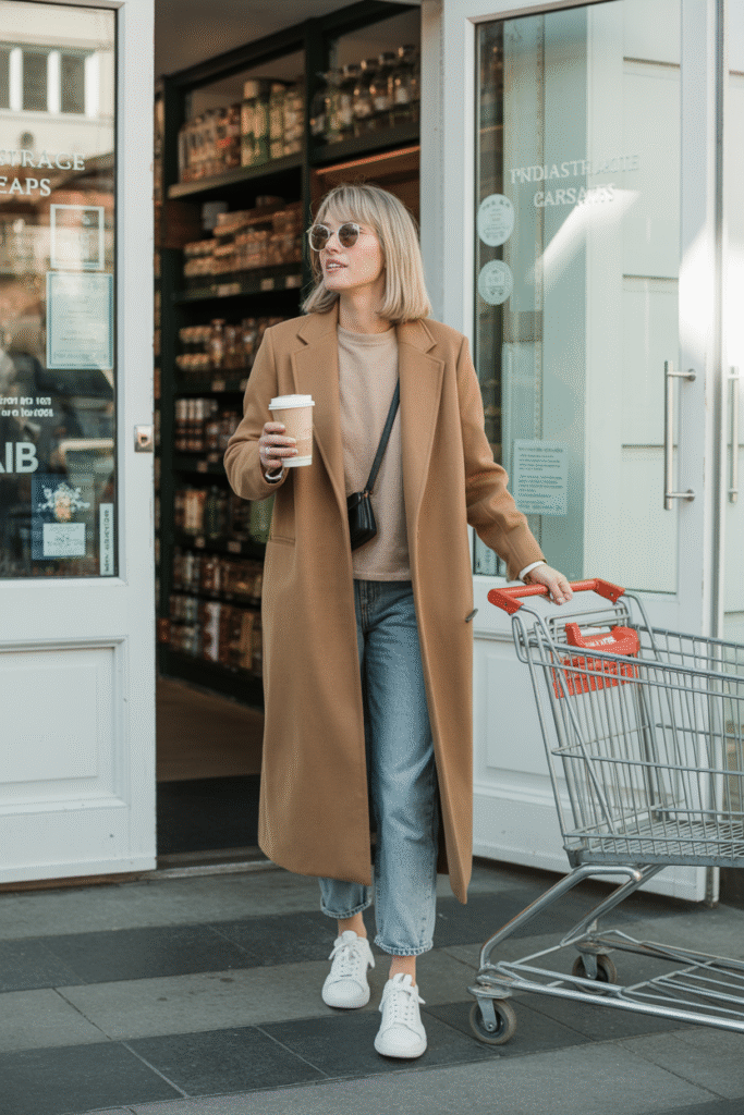 Why it works: It’s the most “winter chic outfits classy” of the six cozy chic errand outfits. Swap the tote for a mini bag and you’re dinner-ready.