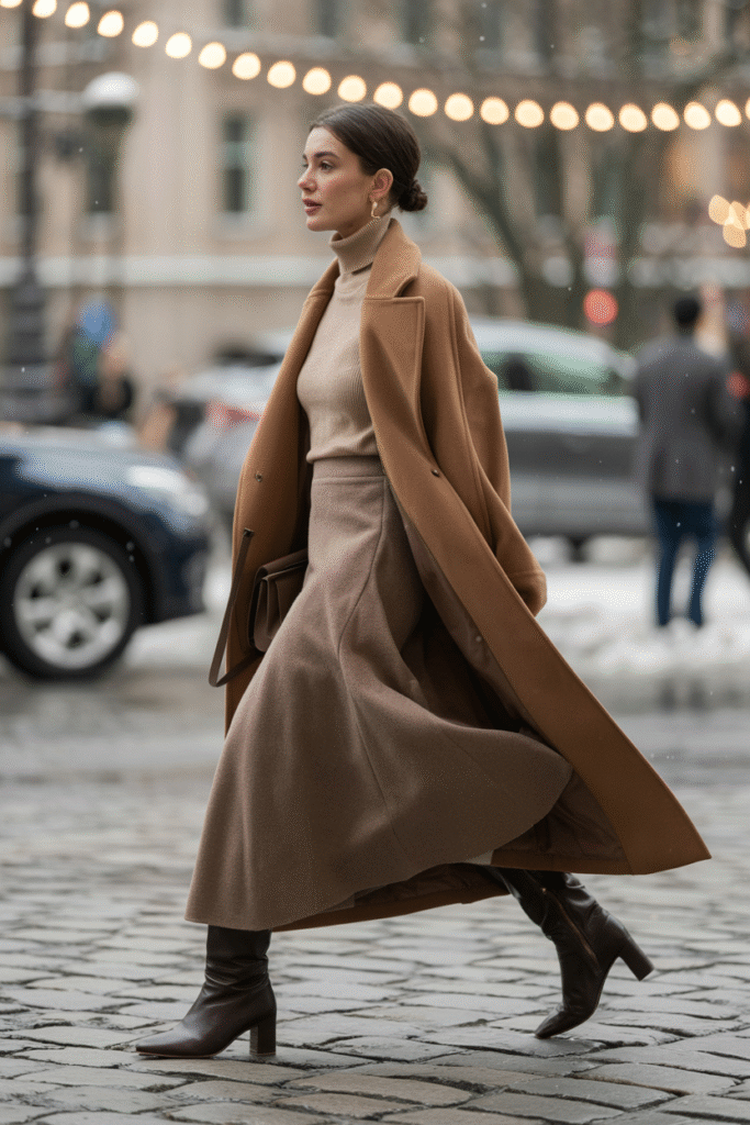 Vibe: Elegant movement without flash; ideal old money outfit winter women pick.