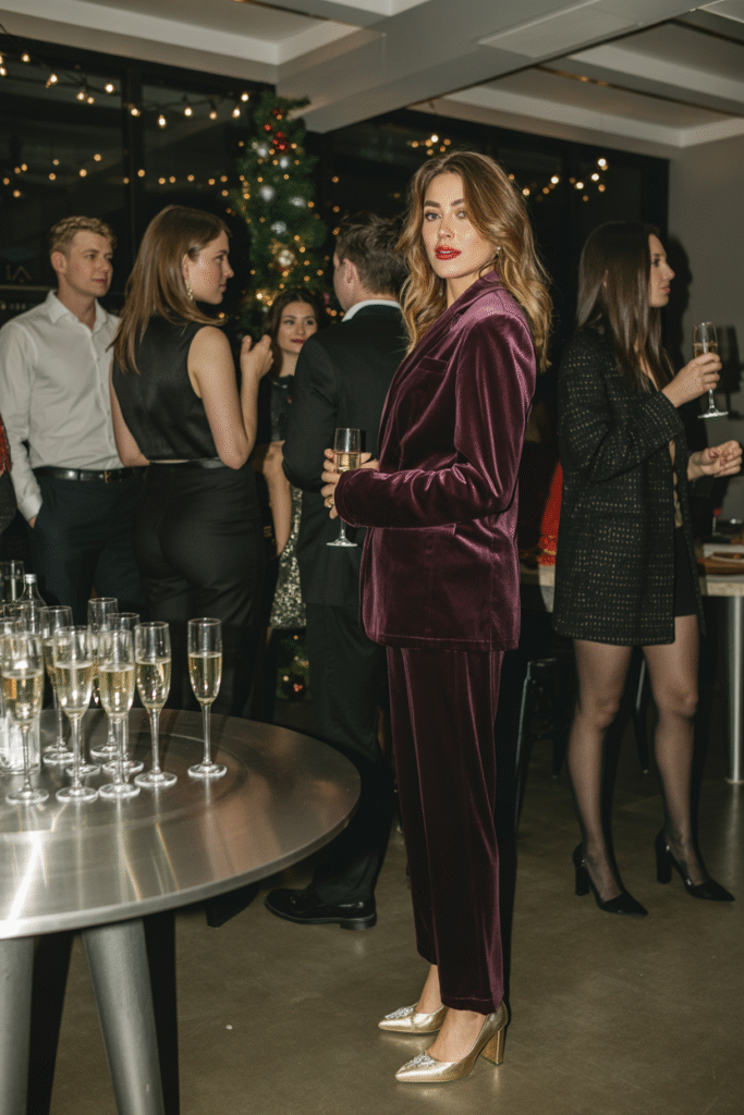 Office Christmas parties are tricky—you want to look polished but not like you’re trying too hard. Enter sequins, velvet, and satin.